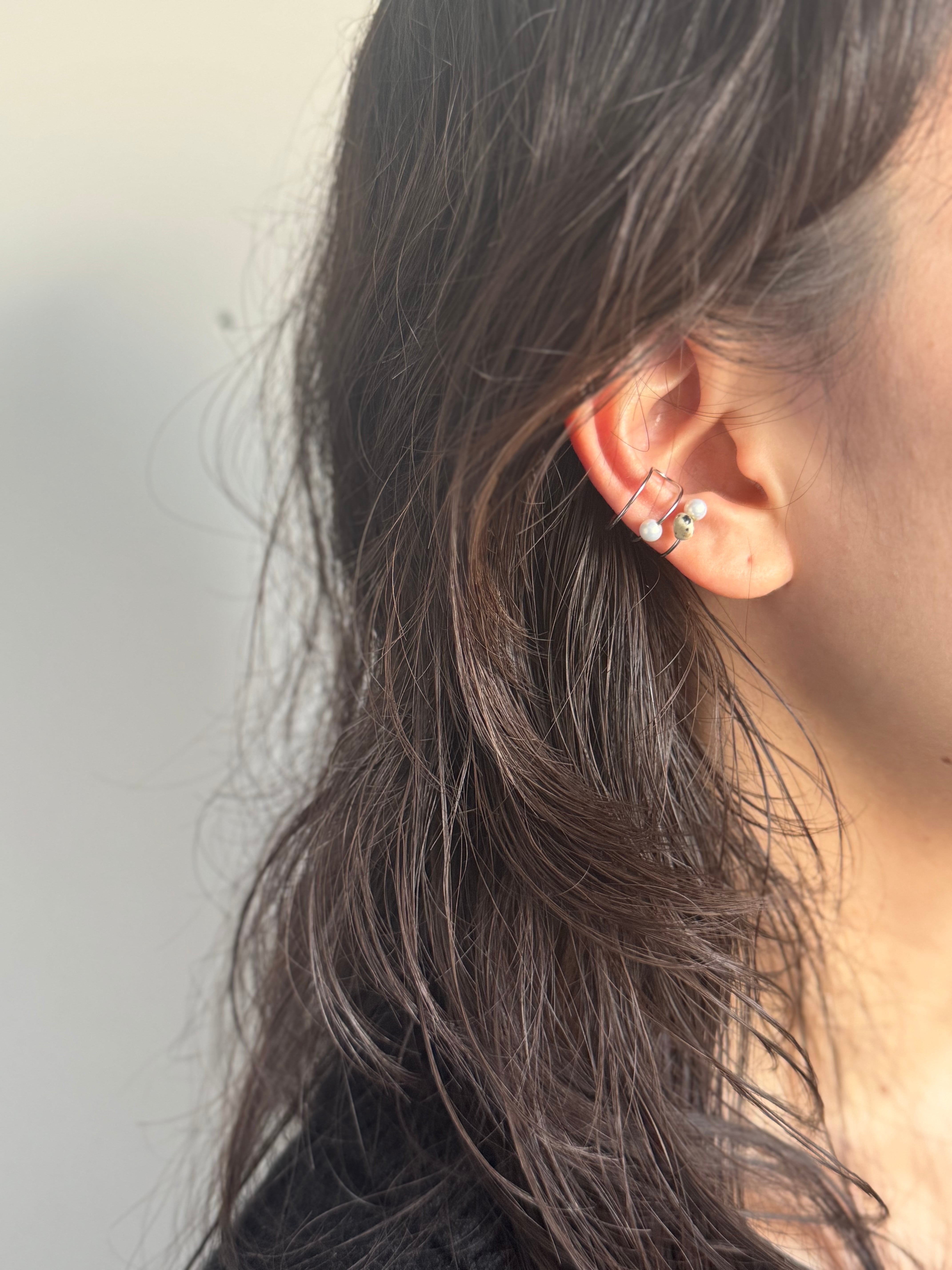 ダルメシアンジャスパーと樹脂パールを使ったイヤーカフ。