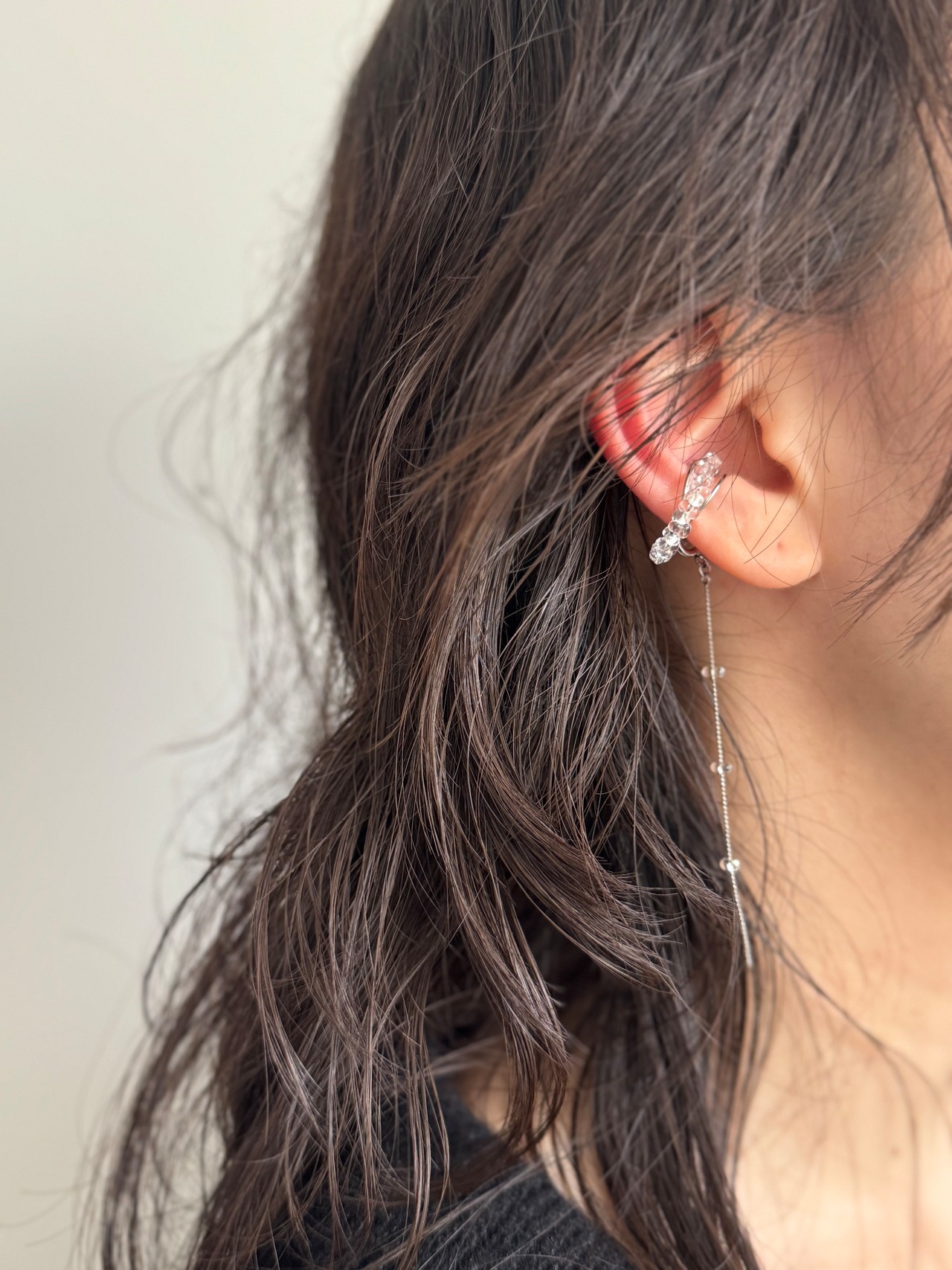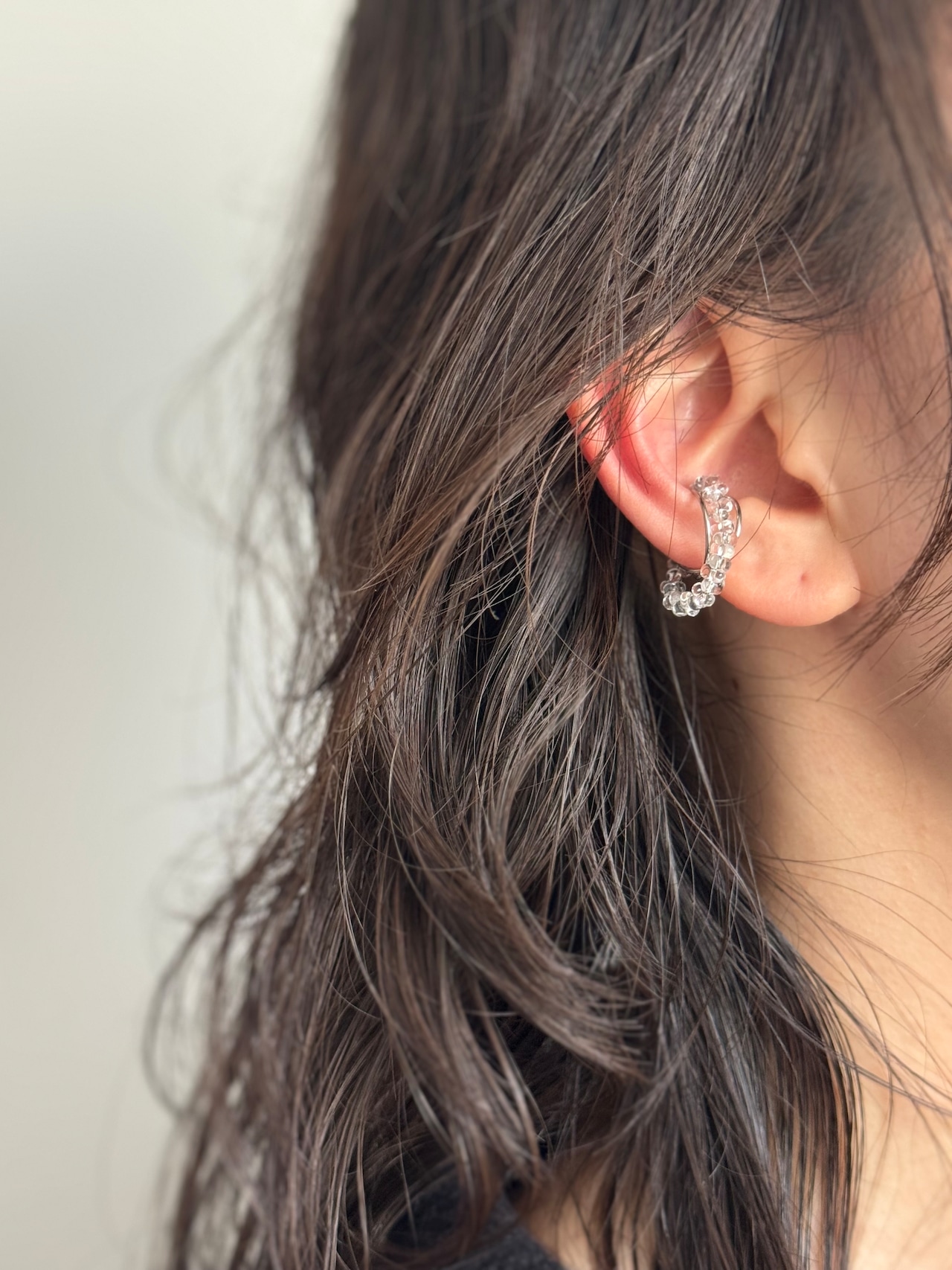 粒々っとしたガラスビーズが付いたイヤーカフ。