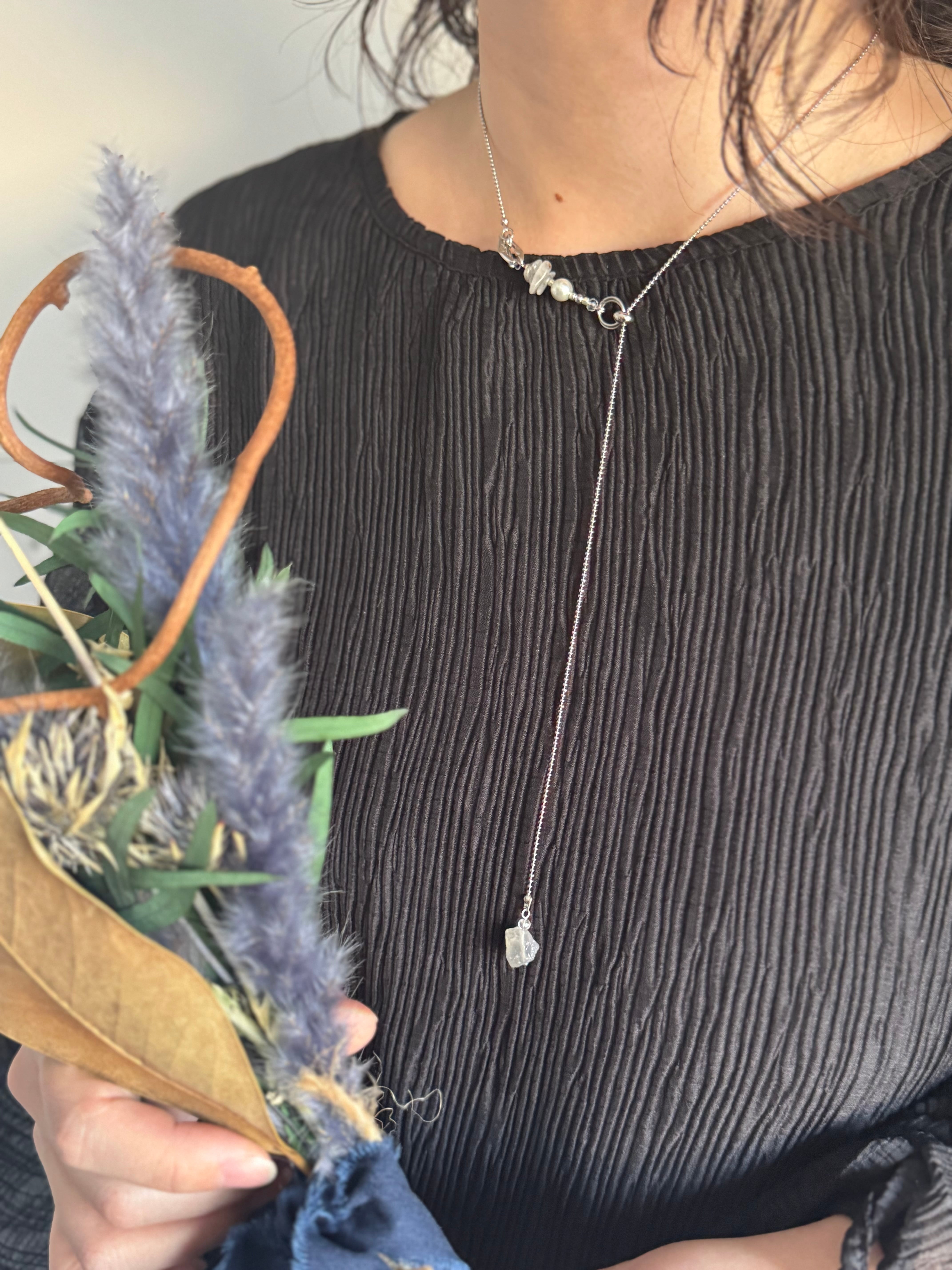 人気のラブラドライトのカフセットのデザインからイメージして、ネックレスに仕立てました。