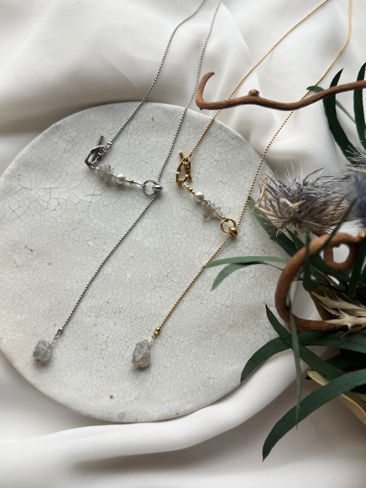 ステンレス、ラブラドライト、樹脂パール、ガラス