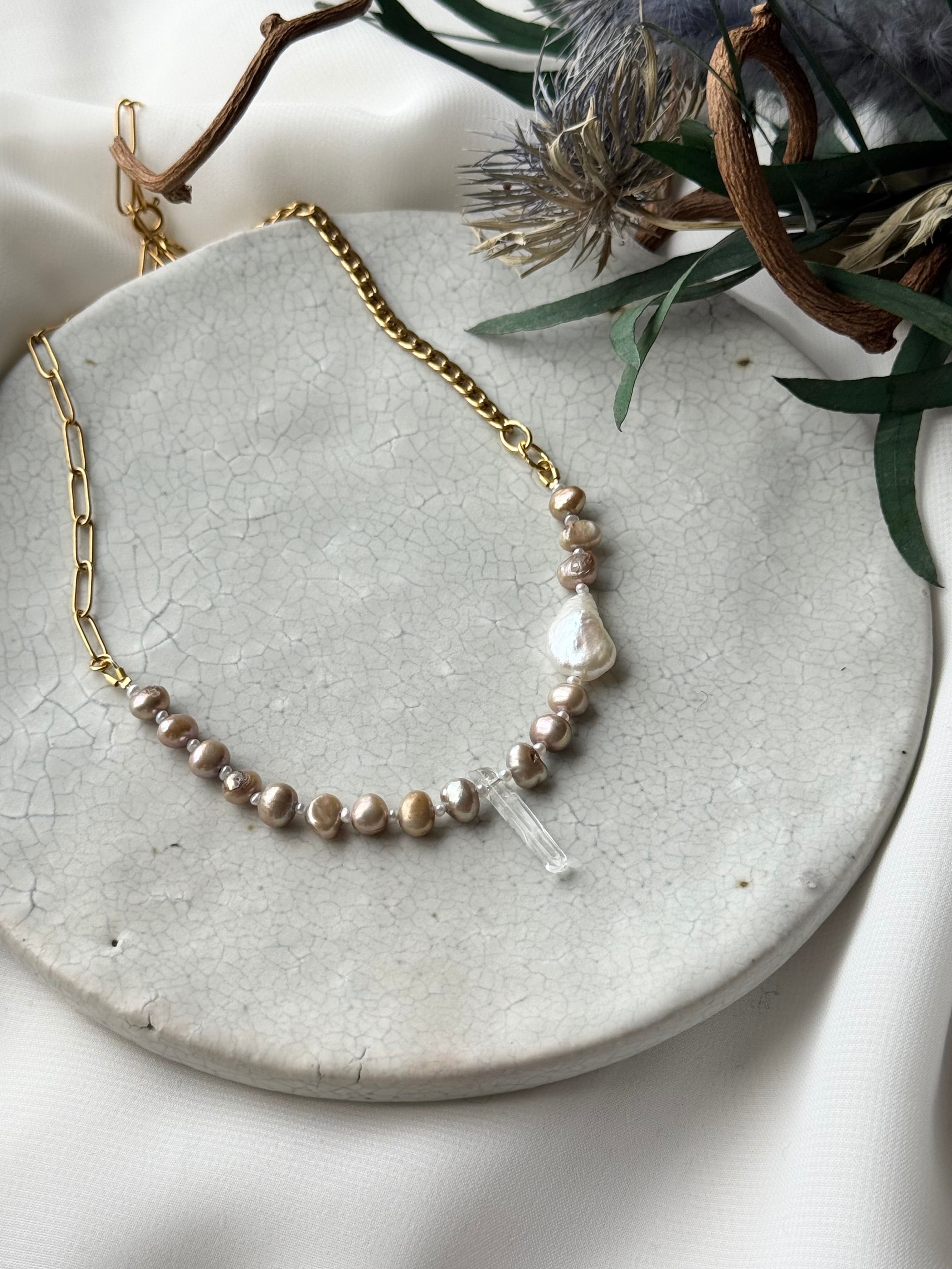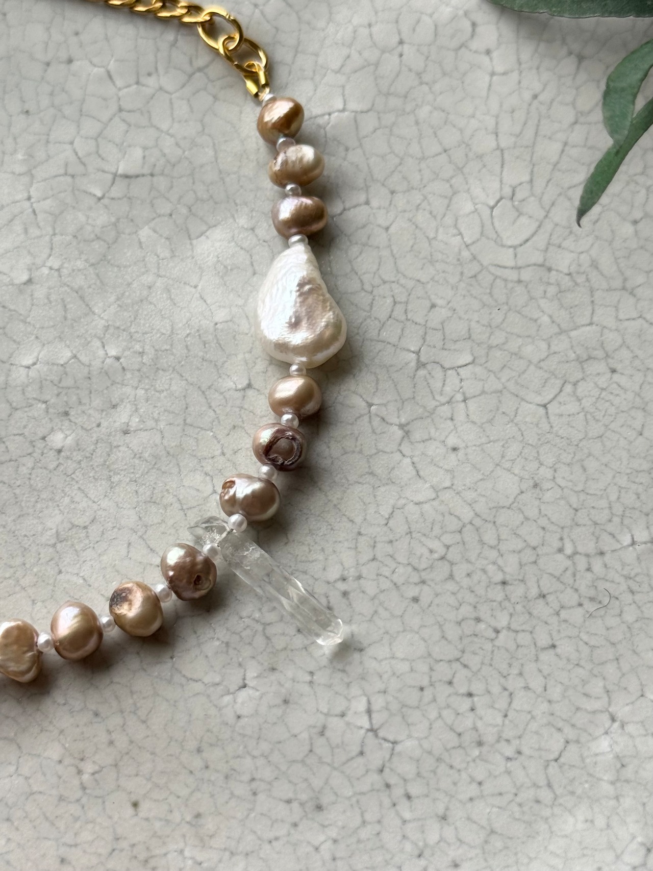 ベージュ系のバロック淡水パールを使った個性的なデザインのネックレスです♪